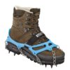 Dobar prianjanje na ledu i snijegu kroz šest klinova na dnu. Fiksacija na cipeli vezivanjem tekstila. Težina 460 g / par.