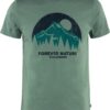 Kada ste vani i na otvorenom, muška majica Nature Fjällräven sa svojom organskom pamučnom tkaninom nudi ugodnu udobnost na koži. Vizualni vrhunac na prednjoj strani muške majice Fjällräven Nature je grafički planinski dizajn s ispranim natpisima.